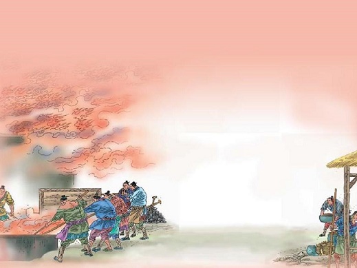 炉火照彻天地,紫烟中红星乱闪。炼铜工人在明月之夜,一边唱歌一边劳动,他们的歌声响彻了寒峭的山谷。