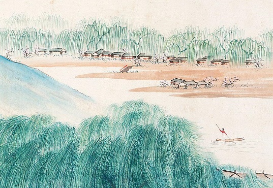 西城的杨柳逗留着春天的柔情,使我想起离别时的忧伤,眼泪很难收回。还记得当年你为我拴着归来的小舟。绿色的原野,红色的桥,是我们当时离别的情形。而如今你不在,只有水孤独地流着。